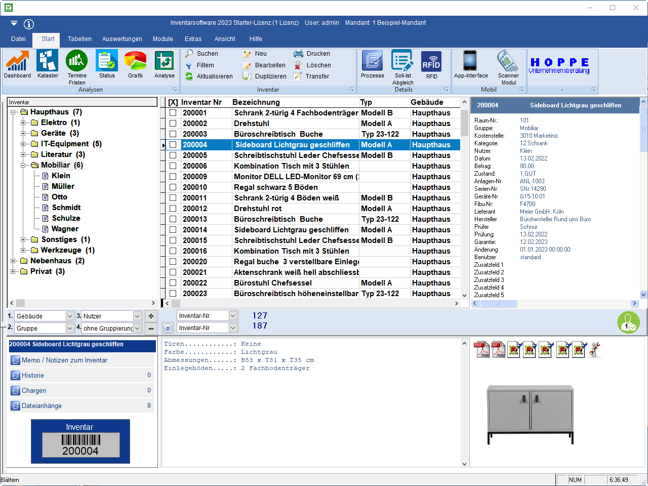 Die digitale Inventarverwaltung wurde von der HOPPE Unternehmensberatung entwickelt.