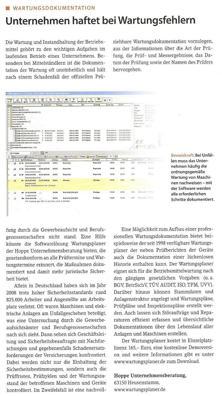 Wartungsdokumentation - Unternehmen haften bei Wartungsfehlern